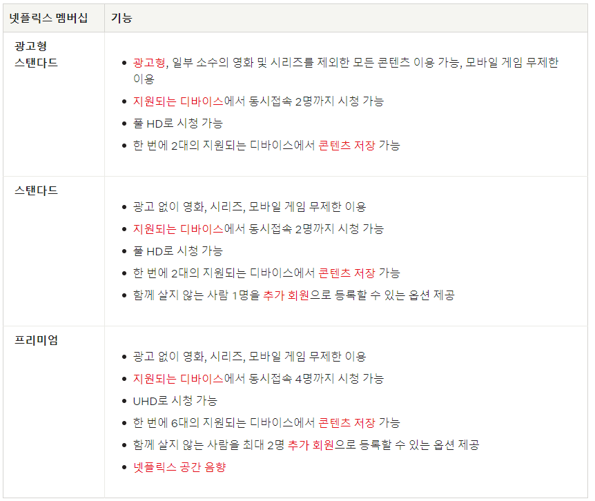 넷플릭스 요금제 비교